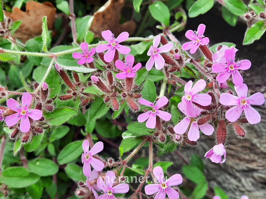 Vom Frühling bis zum Herbst begleiten uns die lebhaft rosaroten Blüten des Roten Seifenkrauts (Saponaria ocymoides L.), das meist trockene und felsige Hänge, Wegböschungen, lichte Föhrenwälder und auch Mauern besiedelt. Die anspruchslose Pflanze wächst auch auf unfruchtbaren Böden und trägt als echte Pionierpflanze das Leben bis in die Felsregion. Sie hat ihre Heimat in den Gebirgen zwischen Spanien und dem östlichen Mittelmeerraum. Mehrere Sorten dieser Art zählen zu den häufigeren Zierpflanzen in Steingärten und an Trockenmauern.