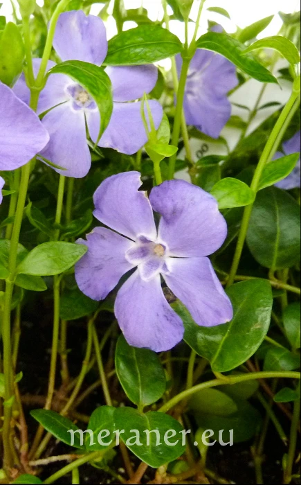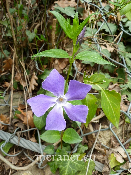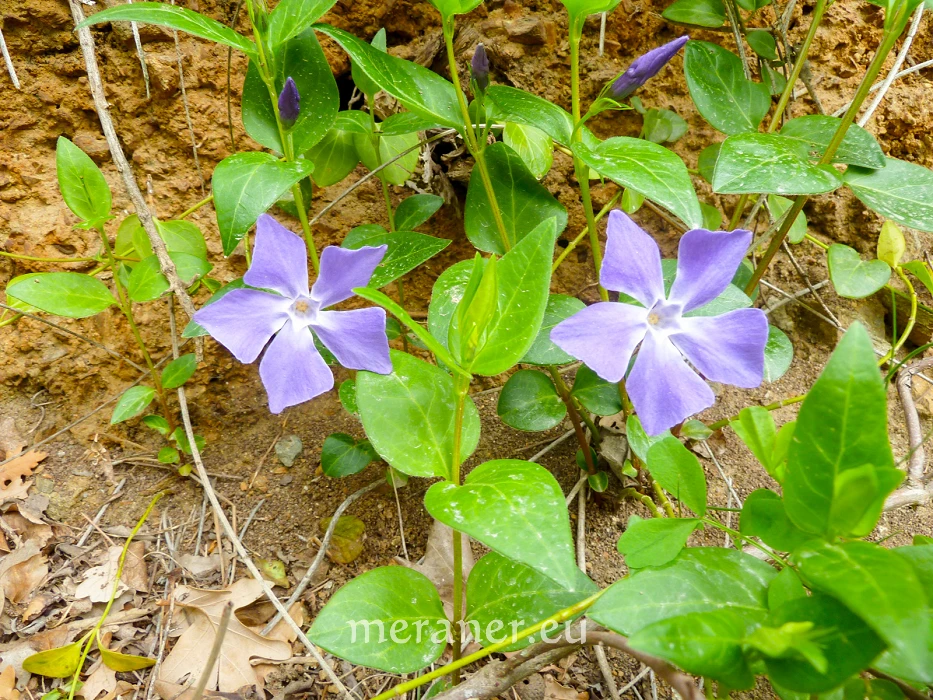 Das Immergrün blüht zeitig im Frühjahr im Flaumeichenbuschwald entlang des Tappeinerweges, an schattigen Promenaden und in Parkanlagen. Die Gattung kommt bei uns in zwei Arten vor: als Großes und Kleines Immergrün.