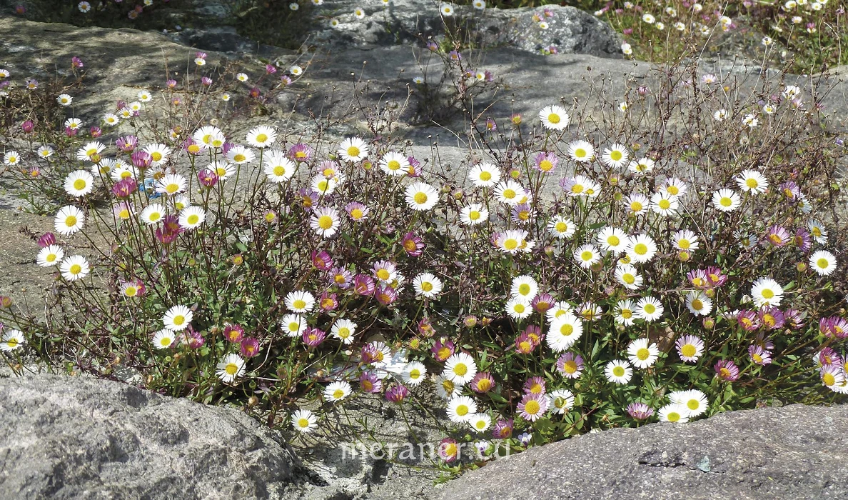 An sonnigen Mauern wird das Mauer-Gänseblümchen häufig vom Großen Löwenmaul (Antirrhinum majus), von der Roten Spornblume (Centranthus ruber, Meraner Stadtanzeiger Nr. 10 vom 14.05.2015) und dem Zimbelkraut (Cymbalaria muralis, Meraner Stadtanzeiger Nr. 13 vom 23.06.2016) begleitet.