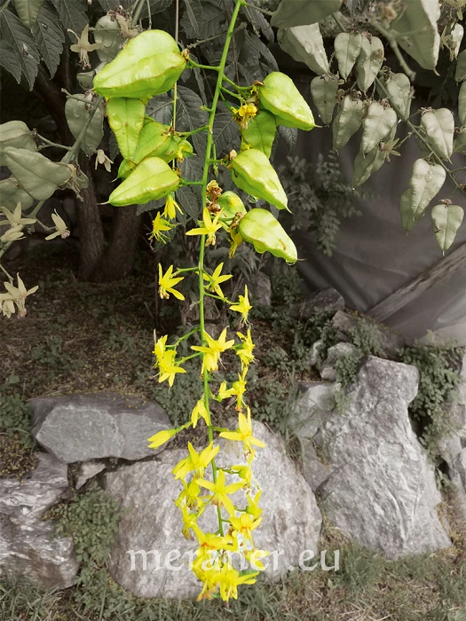Die Kapseln hängen in dichten Büscheln an den Astenden und werden gerne für Blumengebinde verwendet. Sie haben dem Baum den deutschen Namen Blasenbaum eingebracht.