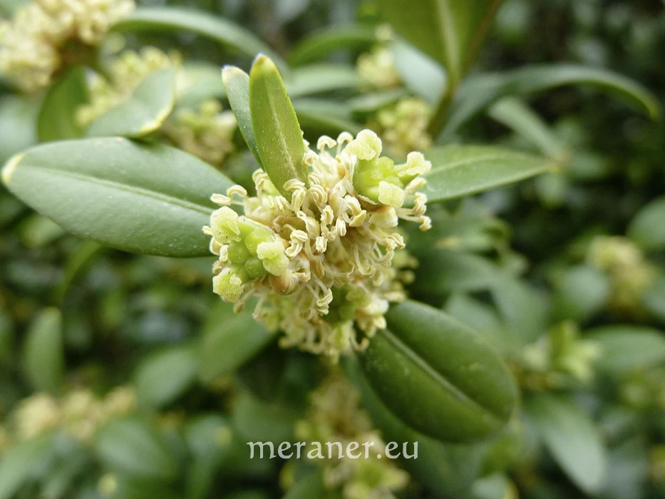 Nur zwei Arten der etwa 70 meist in den Tropen wachsenden Buxus-Arten haben ihr natürliches Verbreitungsgebiet in Süd- und Mitteleuropa: der Gewöhnliche Buchsbaum und der Balearen-Buchsbaum. Diese immergrünen Gehölze wachsen langsam und meist mehrstämmig, oft als Sträucher, manche wachsen zu kleinen Bäumen heran. Sie sind anspruchslos, vertragen Schatten, auch längere Trockenheit und Kälte. Die ledrig-steifen Blätter stehen kurzgestielt und gegenständig an den Zweigen angeordnet; sie sind ganzrandig, eiförmig bis schmal-elliptisch, am Rande meist etwas umgebogen und vorne zugespitzt. In den Blattachseln stehen knäuelartig die gelblichen Blüten mit einer unscheinbaren Blütenhülle. Sie erscheinen bei uns ab März und ihr frischer, angenehmer Duft lockt verschiedene Blütenbesucher an, die den reichlich vorhandenen Nektar und den Pollen abernten. Die Frucht ist eine dreifächerige Kapsel mit einem Hornfortsatz, sie enthält zwei glänzende, schwarze Samen. Das Holz des Buchsbaumes ist schwer und sehr hart und eignet sich wegen seiner Maserung für Drechselarbeiten und Schnitzereien (Musikinstrumente, Spielzeug, Schachfiguren und mathematische Instrumente). Im 19. Jh. wurde es zur Herstellung von Weberschiffchen verwendet. Heute wird es noch für luxuriöse Wandtäfelungen und Einlegearbeiten verarbeitet. Die Pflanze enthält Alkaloide und ist in allen Teilen für Menschen und manche Haustiere giftig (beim Verzehr von größeren Mengen!).