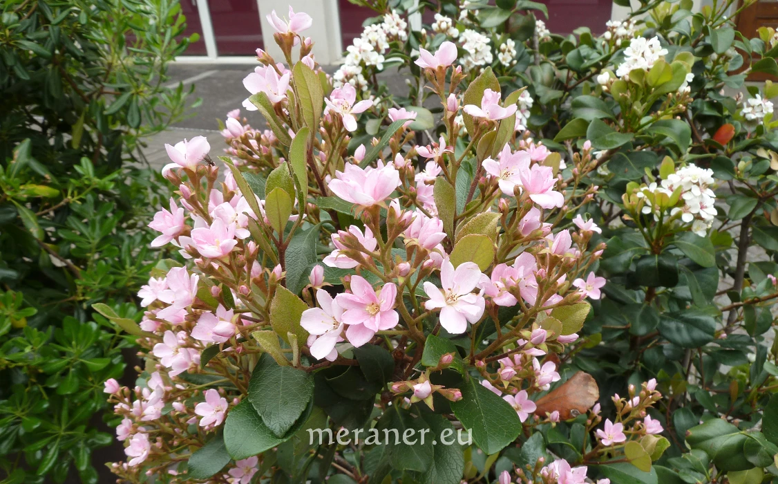 In der Freiheitsstraße bilden Zier- und Kübelpflanzen vor Bars, Pubs und Geschäften die Abgrenzung zur Straße. Es sind Sträucher, die in früheren Ausgaben des MS schon beschrieben worden sind: Lorbeer, Lorbeerschneeball, Chinesischer Klebsame und Zwergpalme. Den Chinesischen Traubenapfel fügen wir diesmal dazu.