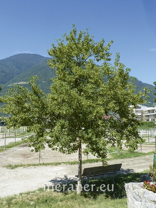 Die Stadtgärtnerei Meran ist bestrebt, für Neupflanzungen jene Gehölze auszusuchen, die mit den durch den Klimawandel geänderten Bedingungen gut zurechtkommen. Auch wird die Tradition fortgeführt, die Vielfalt des Artenspektrums zu erhalten und durch botanische Besonderheiten zu bereichern. Es besteht dabei auch weniger Gefahr, durch Krankheiten und spezifische Schädlinge größere Bestände zu verlieren. Ein Nutzen ergibt sich auch oft dadurch, dass bestäubende Insekten Nahrung und Vögel Nistmöglichkeit finden. Ein Gehölz, das diesen Anforderungen entspricht, wurde 2019 erstmals im Reitzentrum/Meran angepflanzt.