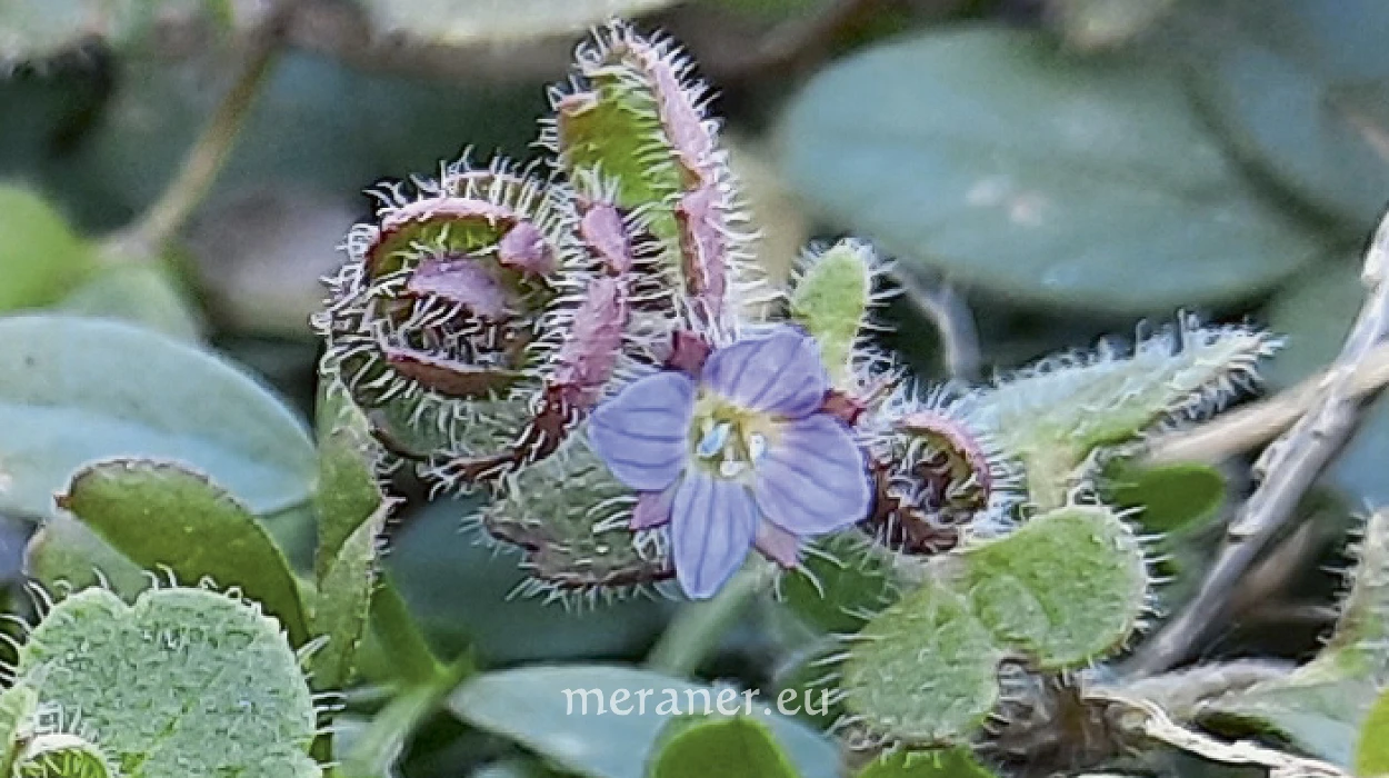 In Südtirol ist die Gattung Ehrenpreis – Veronica, die zur Familie der Wegerichgewächse (Plantaginaceae) gehört, mit etwa 30 Arten vertreten. Sie wachsen in vom Menschen geprägten Landschaften als Wiesenpflanzen und Ackerunkräuter, aber auch in alpinen Zonen. Es sind niedrige, einjährige bis ausdauernde, krautige, oft kriechende Pflanzen mit gegenständigen Blättern. Die meist blauen Blüten stehen zu mehreren gehäuft in Trauben am Ende des Stängels, auch einzeln oder zu mehreren in lockerer Verzweigung auf dünnen Stielen, die aus den Blattachseln entspringen. Die Blüten besitzen je vier Kelch- und Kronblätter unterschiedlicher Größe, zwei Staubbeutel und einen filigranen, gleichlangen Griffel in ihrer Mitte. Die Früchte enthalten sehr viele Samen, die lange Zeit im Boden lebensfähig sind. Manche Arten galten im Mittelalter als nützliche Heilkräuter gegen zahlreiche Beschwerden, heute werden sie nur noch gelegentlich in der Naturheilkunde verwendet.