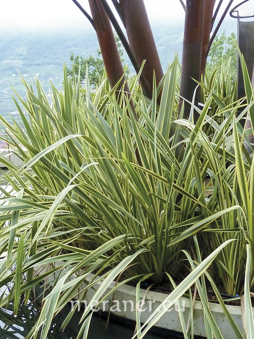 Die bei uns häufig gepflanzte Kulturform Phormium tenax ´Sundowner´ hat eher kräftige, rosa-orange-bronzefarbene Blätter mit grünem Rand. Die Form ´Variegatum´ hat grüne Blätter mit gelblichen und weißen Streifen. Die Blätter der Form 'Atropurpureum' sind dunkelviolett. Die zartere Art Phormium colensoi eignet sich eher als Zimmerpflanze.