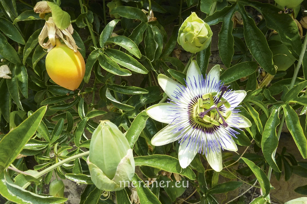 Die Blaue Passionsblume hat zwar im Winter ihre Ruhepause (manche blühen an milden Standorten bis in den Spätherbst!), wegen der geheimnisvollen, wunderschönen Blüten wollen wir sie trotzdem jetzt beschreiben.