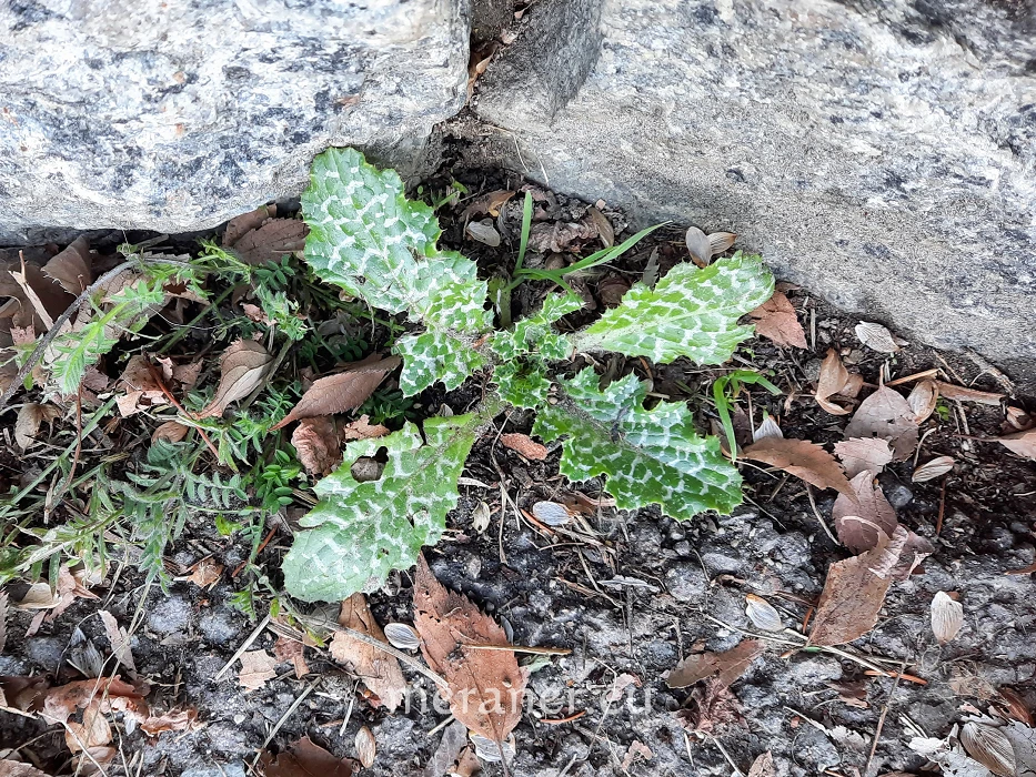Die Mariendistel gehört zur großen Familie der Korbblütler (Asteraceae) und ist vor allem im Mittelmeergebiet verbreitet. Sie besiedelt Schuttplätze, Wegränder und Viehweiden auf meist trockenen, steinigen Böden in wärmeren Gegenden. In Südtirol sind nur wenige Fundorte bekannt. Für arzneiliche Zwecke und auch als Zierpflanze wird die Mariendistel kultiviert. Der Gattungsname Silybum stammt aus dem Griechischen und bedeutet Quaste, womit die auffälligen, kugelförmigen Blütenstände gemeint sind. Die Artbezeichnung und der deutsche Name haben die heilige Maria als Namensgeberin. Nach einer alten Legende entstammen die weißen Flecken auf den Blättern von der Milch der stillenden Maria. Die weiße Färbung lässt sich aber folgendermaßen erklären: Das oberflächliche Gewebe der Blätter ist an den betreffenden Stellen abgehoben und bildet darunter luftgefüllte, kleine Polster; wegen der veränderten Lichtbrechung erscheinen diese Bereiche weiß.