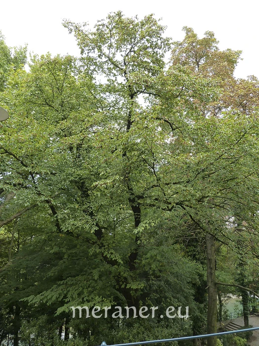Die Hopfenbuche, auch Gemeine Hopfenbuche, gehört zur Familie der Birkengewächse (Betulaceae). Der Gattungsname Ostrya leitet sich vom griechischen óstreon ab, bedeutet Muschel, Auster und bezieht sich auf das harte Holz, verglichen mit der Härte der Austernschalen. Der Artname carpinifolia beschreibt die Blätter, die denen der Hainbuche (Carpinus betulus), die wir im Meraner Stadtanzeiger Nr. 18 vom 20.09.2013 beschrieben haben, sehr ähnlich sind. Bemerkenswert ist, dass in Ötzis Darm Pollen der Hopfenbuche nachgewiesen werden konnten.