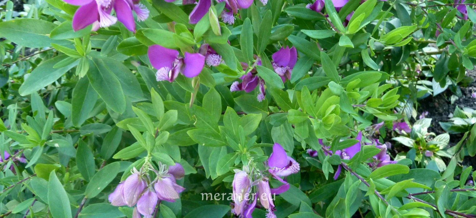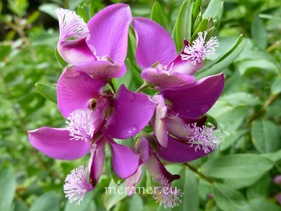 Vom späten Frühling bis weit in den Herbst hinein begleiten uns die extravagant geformten Blütenschiffchen des immergrünen, aber bei uns nicht winterharten Strauches. Die Pflanze ist in Südafrika, in Australien und Neuseeland beheimatet, stellenweise im Mittelmeergebiet als Neophyt eingebürgert und bei uns eine Zierpflanze. Polygala ist eine Gattung in der Familie der Kreuzblumengewächse (Polygalaceae).