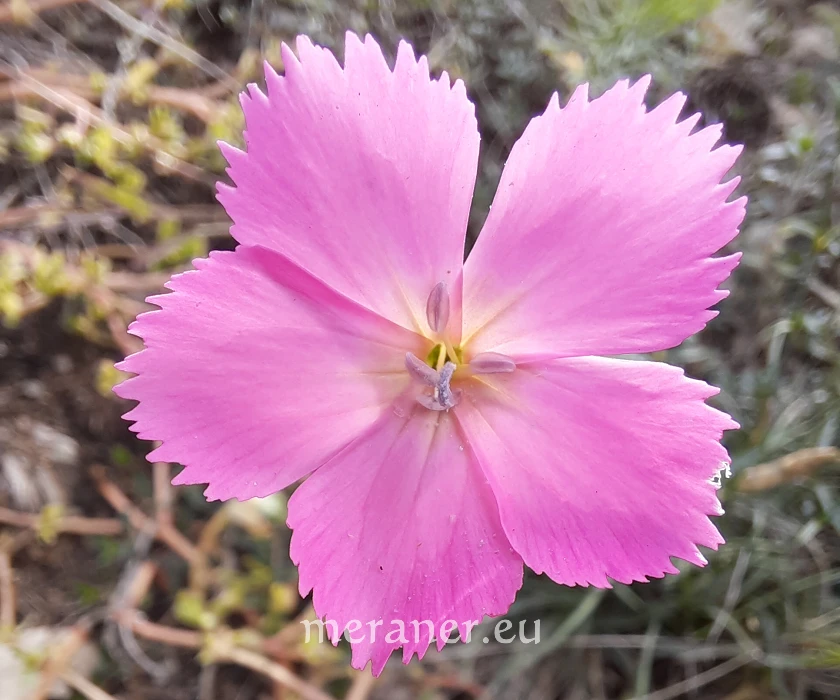 Die Steinnelke (Dianthus sylvestris Wulfen), auch Wilde Nelke genannt, ist eine mehrjährige, sommergrüne Pflanze, die in Trockenrasen auf mageren, felsigen Standorten (bis etwa 2.500 m ü.M.), in Felsnischen und -spalten polsterartige Rasen bildet. Um auf den trockenen Böden möglichst wenig Wasser zu verlieren, besitzt die Pflanze sehr schmale, blaugrüne Blätter und ein kräftiges Wurzelwerk. Die schwach duftenden Blüten stehen einzeln oder zu mehreren (1-4) am Ende der bis