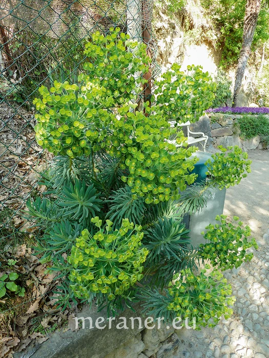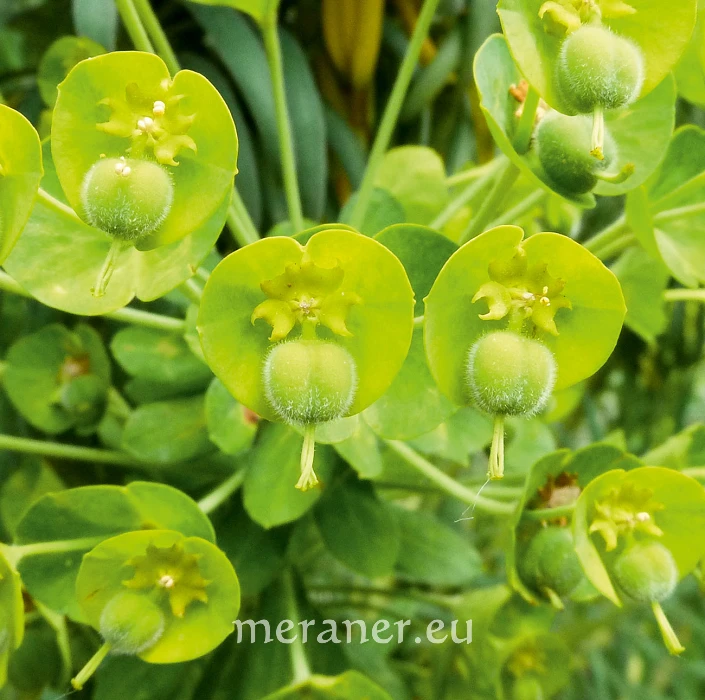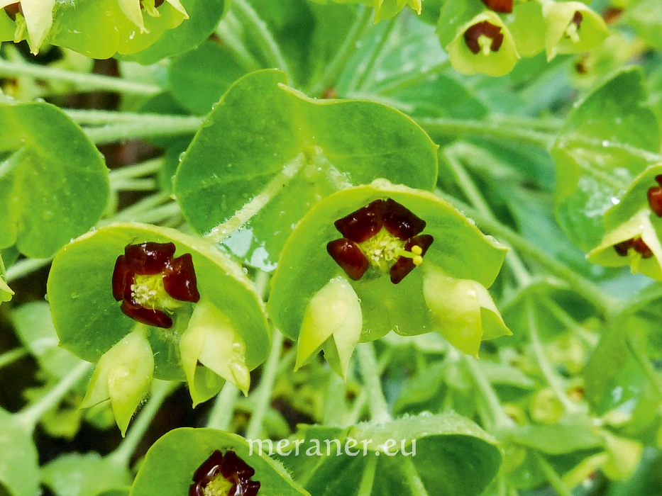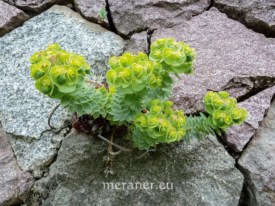 Die vielgestaltige Gattung Euphorbia gehört mit fast 2.000 Arten in die Familie der Wolfsmilchgewächse (Euphorbiaceae). Ihre Arten sind weltweit, vorwiegend in tropischen und subtropischen Gebieten, aber auch bei uns verbreitet. Charakteristische Merkmale sind Milchsaft führende Pflanzenteile und stark reduzierte, eingeschlechtige Blüten mit auffallenden Nektardrüsen. Der giftige Milchsaft dient den Pflanzen als Fraßschutz und Wundverschluss; er tritt schon bei kleinsten Verletzungen aus und gerinnt dann bei Luftkontakt innerhalb weniger Minuten.