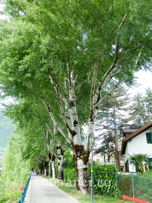 Der wahrscheinlich älteste und einer der mächtigsten Bäume der Meraner Parkanlagen war die Grau-Pappel (Populus x canescens (Aiton) Sm.) im Elisabethpark. Die mächtige, über 200 Jahre alte Pappel war als Naturdenkmal ausgewiesen, musste aber 2015 wegen Überalterung und Fäulnis gefällt werden. Von dieser Art sind weitere Exemplare im öffentlichen Thermenpark und an der Sommerpromenade vorhanden.