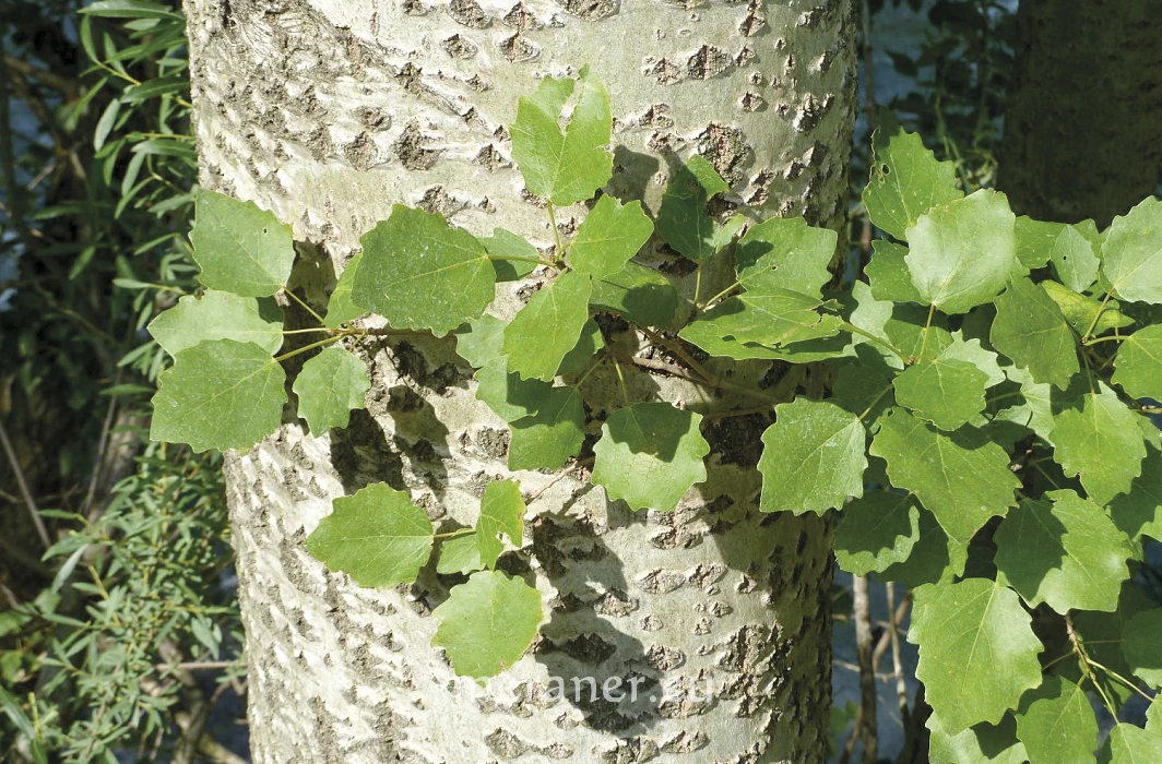 Die Zitter-Pappel (Populus tremula L.) oder Espe erhielt ihren Namen von den sehr lang gestielten Blättern, die beim leisesten Windhauch zittern: tremulus (lat.) = zitternd. Die Blätter sind rundlich, herzförmig bis rautenförmig und haben einen stumpf gekerbten Rand. Die Blattstiele sind seitlich zusammengedrückt und die Blätter somit unstabil. Die gelbgraue Rinde ist wie bei der Silber-Pappel mit großen rautenförmigen Korkwarzen versehen. Die Zitter-Pappel ist in Europa die häufigste Pappelart. Ihr natürlicher Standort sind lichte Wälder, Wegränder und Flussufer. Als Pionierbaum besiedelt sie auch Brachflächen und Kahlschläge.