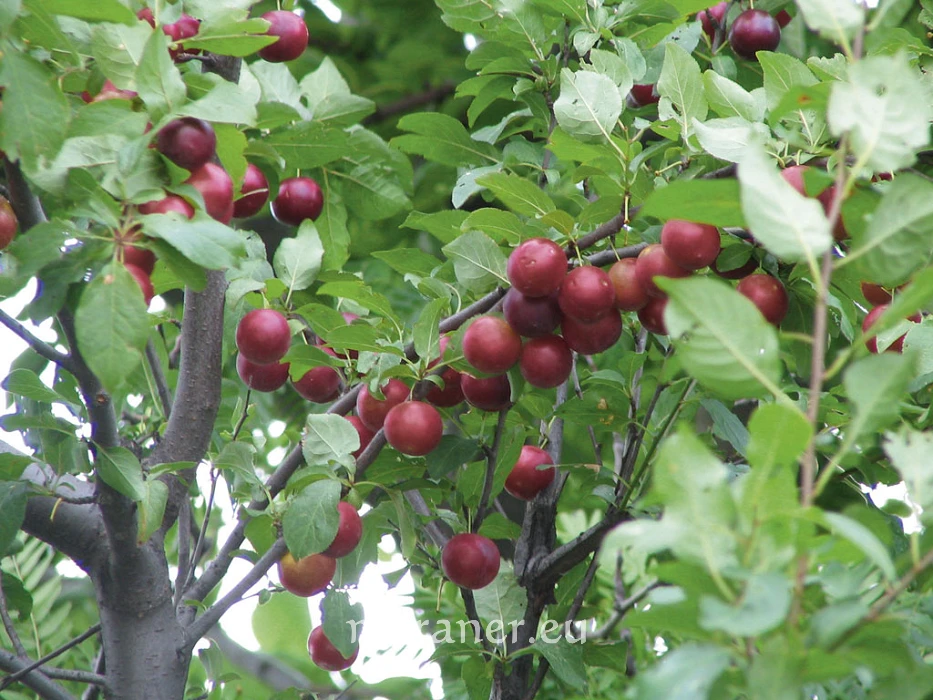 Kirschpflaume (Pr. cerasifera Ehrh.): Der bis 8 m hohe ein- oder mehrstämmige Kleinbaum oder Strauch hat eine kugelige Krone und ist dicht und sparrig verzweigt. Die Blätter sind glänzend grün und gezähnt. Die weiß oder rosa gefärbten, meist einzeln stehenden Blüten gehören zu den ersten Boten des Frühlings und erscheinen kurz vor oder mit dem Laubaustrieb. Die kugeligen, den Mirabellen ähnlichen Früchte sind rot oder gelb und etwas bereift, säuerlich und essbar. Der Baum ist in Südosteuropa (Balkan) beheimatet und wurde bei uns als Zierbaum eingebürgert.