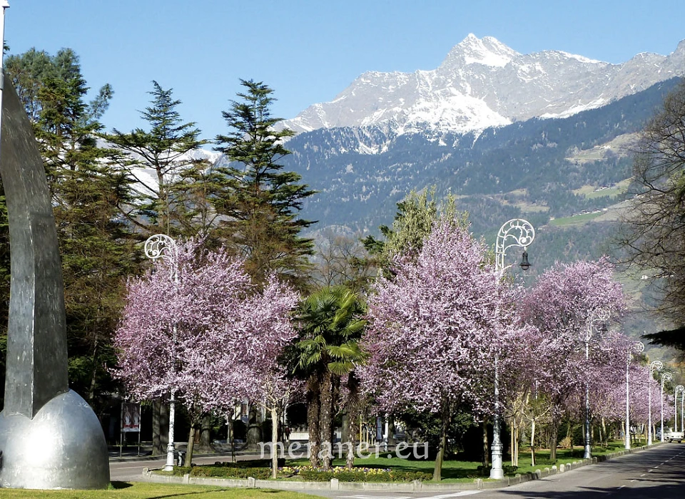 Vorkommen: an der Kur- und Winterpromenade, im Elisabethpark, am Tappeinerweg, im Maiser Park, im städtischen Friedhof, in der Gampen- und Petrarcastraße und häufig in privaten Gärten.