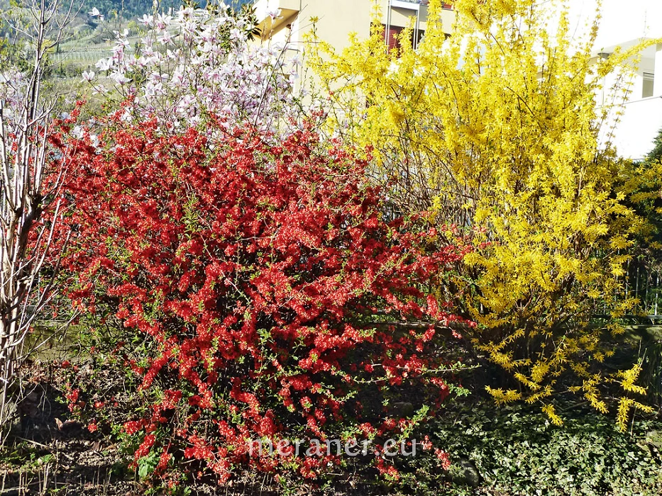 Schon zeitig im Frühjahr begegnet uns häufig ein reich blühender Strauch, den K. Honeck mit einem „brennenden Busch“ vergleicht: die Zierquitte oder Scheinquitte. Die zu den Rosengewächsen (Rosaceae) zählende Gattung Chaenomeles umfasst drei Arten, die Japanische Zierquitte, die Chinesische Zierquitte und die Großfrüchtige Zierquitte. Wie ihre Namen andeuten, sind die Sträucher in Japan und China beheimatet. Die Chinesische Zierquitte gelangte schon 1796 nach Europa, während die Japanische Zierquitte erst 1874 eingeführt wurde; beide sind wegen des Blütenreichtums im Frühjahr als Ziersträucher sehr beliebt. Sie sind anspruchslos in Bezug auf die Bodenqualität, winterhart und ertragen auch belastete Luft am Straßenrand. Chaenomeles ist jedoch eine Wirtspflanze für das Feuerbrandbakterium (Erwinia amylovora), sodass bei uns in Obstanbaugebieten von Neuanpflanzungen dieses Strauches abzusehen ist (Beschluss der Landesregierung Nr. 746/2005).
