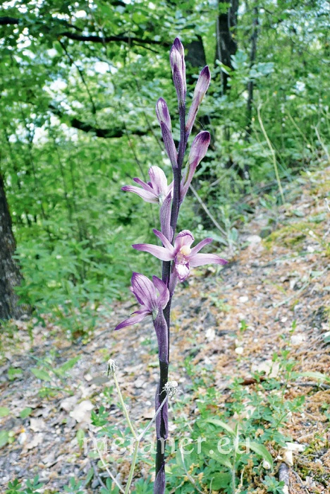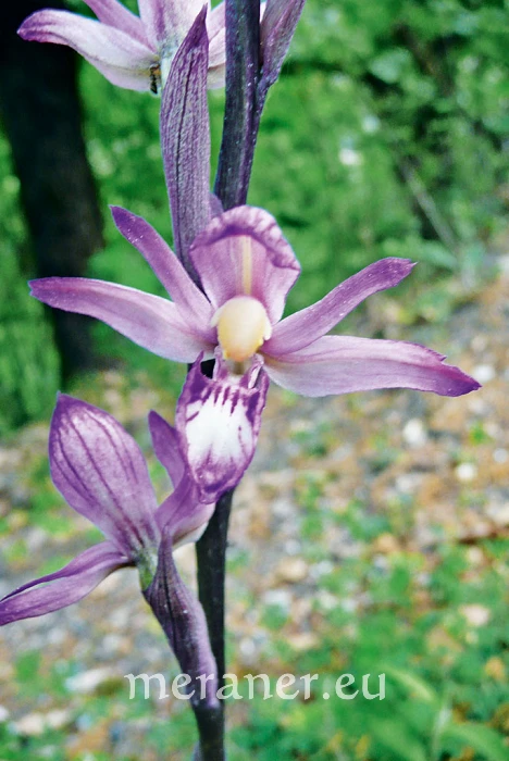 Der Violette Dingel (Limodorum abortivum) ist eine Pflanzenart in der Familie der Orchideen (Orchidaceae). Das Hauptverbreitungsgebiet dieser besonders wärmebedürftigen Orchidee liegt im Mittelmeerraum und im südlichen Mitteleuropa. In Südtirol findet man die Pflanze in lichten Buschwäldern (vor allem bei Hopfenbuche und Eiche) und Föhrenwäldern im Etschtal, im Vinschgau bis Schlanders (bis ca. 900 m Meereshöhe), während sie ins Eisacktal nicht mehr vordringt. Im Meraner Raum finden wir sie in den Föhren- und Eichenmischwäldern oberhalb Gratsch, auch entlang des Algunder Waalweges.