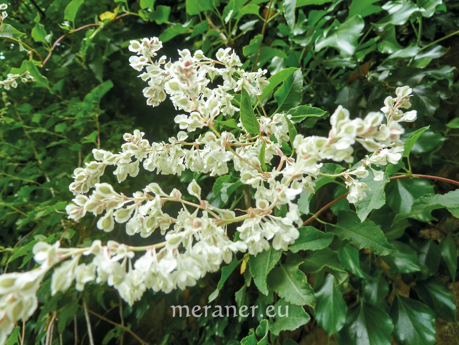 Der Schlingknöterich (Fallopia baldschuanica (Regel) Holu), Syn.: Fallopia aubertii) stammt ursprünglich aus Mittelasien. Er ist in Europa und Nordamerika zu einem unerwünschten (invasiven) Neophyt geworden. Er wächst sehr schnell und kann an kräftigen Kletterhilfen bis 15 m hoch klettern. Die Pflanze ist sehr dicht verzweigt und kann in kurzer Zeit mit den eiförmig-lanzettlichen Blättern größere Flächen begrünen. Die vielen kleinen, grünlichweißen bis rosafarbenen Blüten bilden sich an langen Rispen, die Samen sind meist unfruchtbar.