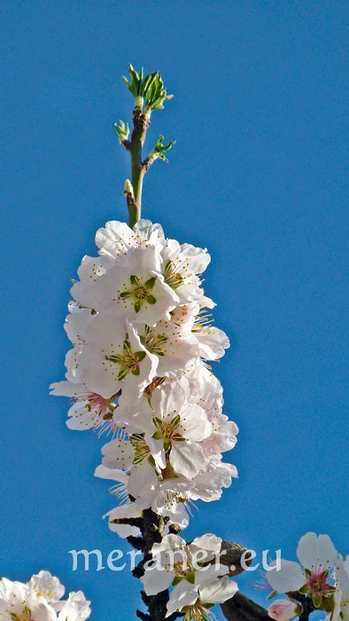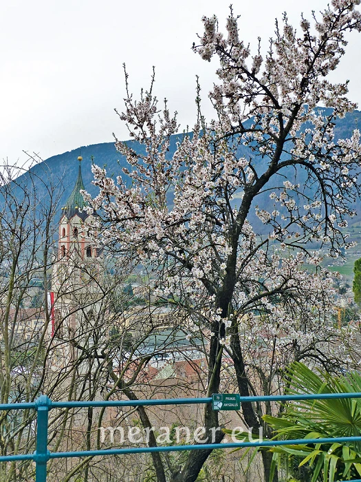 Die Freude über die frühe Blütenpracht hat schon die Dichterin Gertrud von Le Fort, die häufig im Schloss Labers auf Erholung weilte, mit den Worten ausgedrückt: ein Frühlingstag in Meran! (…) in den Weinbergen aber blühten schon die Mandelbäume, dass es war, als hätten sich kleine rosenrote Abendwolken allenthalben auf Erden niedergelassen und der Schriftsteller Beda Weber schreibt vom Mandelbaum, dessen schöne Blüte dem Auge in Südtirol als etwas Geweihtes, als Ausdruck der zartesten, lieblichsten Gedanken und Gefühle erscheint, und daher mit besonderer Teilnahme, mit einer Art Schauer von allen kindlichen Gemütern begrüßt wird.