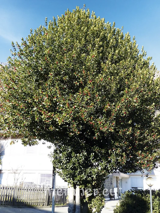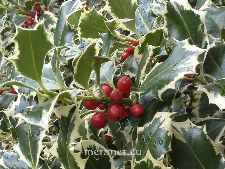 In Merans Gärten und Parkanlagen ist die Stechpalme häufig anzutreffen. Ihre korallenroten Früchte, die sich kontrastreich vom dunklen Laub abheben, machen sie zu einem sehr beliebten Zierbaum. Mit Palmen ist die Pflanze allerdings nicht verwandt. Der deutsche Namensteil „Palme“ lässt sich vielmehr von der Tradition ableiten, dass am Palmsonntag mangels echter Palmen Zweige von immergrünen oder zu dieser Jahreszeit bereits ergrünten Pflanzen (Weiden -„Palmkätzchen“, Buchsbaum, Stechpalme) gesegnet wurden.