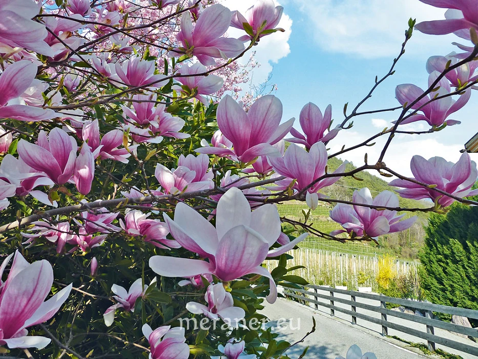 Beide Eltern-Arten der bekannten und sehr häufig gepflanzten Tulpen-Magnolie stammen aus China: die Yulan-Magnolie (M. denudata) und die Purpur-Magnolie (M. liliiflora).