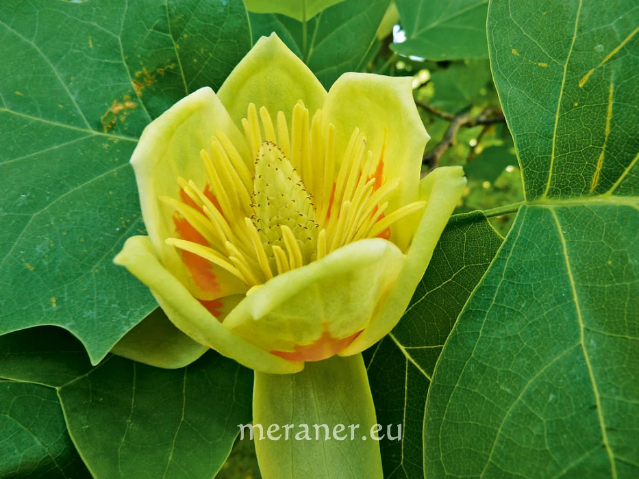 Ein stattlicher Baum, der durch die Form und Größe der Blätter und Blüten und im Herbst durch die goldgelbe Färbung der Blätter auffällt, ist der Tulpenbaum. Liriodendron tulipifera ist eine Baumart aus der Familie der Magnoliengewächse (Magnoliaceae) und wie diese aus botanischen Gründen sehr interessant. Er zeigt in seinen Blüten noch sehr ursprüngliche, wenig entwickelte Merkmale und gehört wie die Magnolie mit ihren auffälligen Blüten zu den einfachsten Blütenformen der Bedecktsamer.