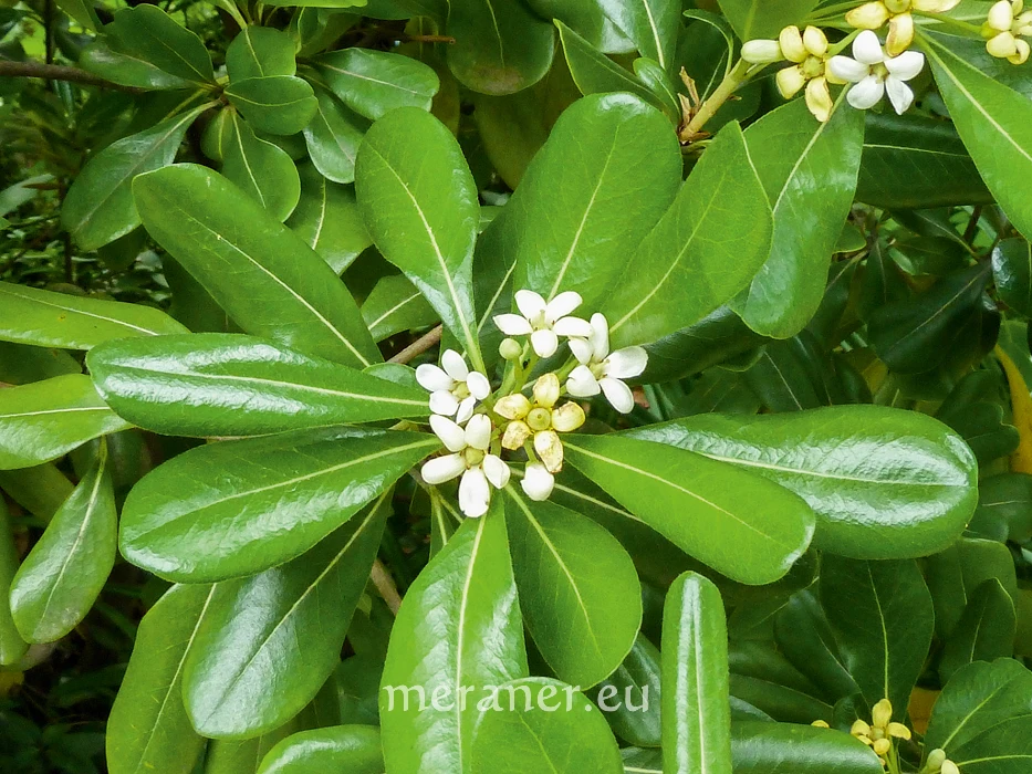 An trockenen und sonnigen, aber auch halbschattigen Plätzen unserer Promenaden und Parkanlagen gedeiht der aus Ostasien (China und Japan) stammende Chinesische Klebsame (Pittosporum tobira (Thunb.) Ait.). Das Gehölz ist im Mittelmeerraum als Hecken- und Formschnittpflanze weit verbreitet, gern wird es auch als Kübelpflanze gehalten. Die Pflanze gehört zur Familie der Klebsamengewächse (Pittosporaceae), deren Samen in einen klebrigen Schleim eingebettet sind. Dieses Merkmal hat dem Strauch den deutschen Namen Klebsame gegeben; der botanische Name Pittosporum leitet sich von pítta = píssa (gr.) = Pech und sporá (gr.) = Same ab.