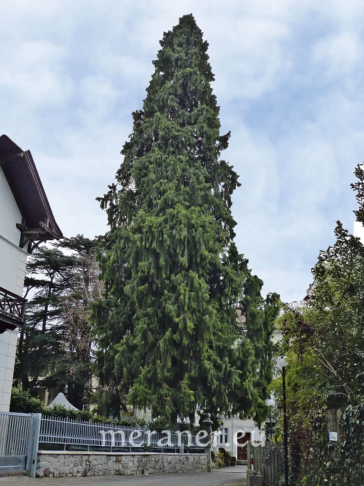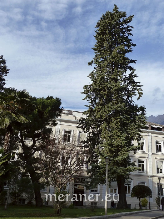 Vorkommen: Gilfpromenade, Marconipark, beim Jüdischen Museum in der Schillerstraße, Moser-Anlage, Schillerpark, Friedhöfe, Negrelli-Schule, Texelstraße. Das älteste Exemplar einer Rauborkigen Arizona-Zypresse befindet sich in der Nähe der Landesfürstlichen Burg. Glattborkige Exemplare kann man im zugänglichen Thermenpark finden.