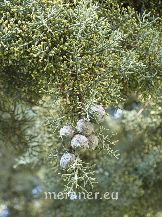 Die Arizona-Zypresse (Cupressus arizonica Greene) sticht besonders durch ihr blaugrünes Blattwerk und die rötlichbraune Rinde hervor. Sie ist ein immergrünes Zypressengewächs (Cupressaceae), das in den Bergen Arizonas (Nordamerika) und Mexikos beheimatet ist. Von den fünf Varietäten dieser Art, die von manchen Botanikern als eigene Arten angesehen werden, kommen bei uns zwei Varietäten vor: die Rauborkige Arizona-Zypresse (C. arizonica var. arizonica) und die Glatte Arizona-Zypresse (C. arizonica var. glabra). Sie gelten als kälteunempfindlich und dürrefest und werden bei uns freistehend als Zierbäume, aber auch als lebende Zäune in Heckenform angepflanzt.