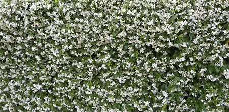 Der in Asien heimische Sternjasmin , auch Schnabelsame genannt (wegen der Samenform?), ist eine Kletterpflanze, die sich an Zäunen, Steinmauern, Bäumen und mit Hilfe von Klettergerüsten an Fassaden emporwindet. Er blüht ab Juni und fällt mit seinem starken, angenehmen Duft auf, den die auffällig windradartig gedrehten, weißen Blüten verströmen. Der Duft und die Blütenform und -farbe erinnern an den Echten Jasmin ( Jasminum officinale L.), was auch der Artname ausdrücken will. Der Echte...