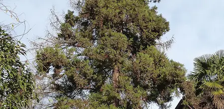 Das trockene Klima Merans bietet nicht die geeigneten klimatischen Bedingungen zum guten Gedeihen der Sicheltanne, deshalb wachsen in den Parkanlagen nur mittelgroße Exemplare im Schatten anderer Bäume. Die Bäume finden in ihrer Heimat Japan , wo sie „Sugi“ genannt werden, und Südchina die besten Voraussetzungen zum Wachsen vor: kühle Lagen mit reichlich Niederschlägen und einer hohen Luftfeuchtigkeit. Sie bilden dort ausgedehnte Waldbestände und werden forstwirtschaftlich genutzt. Wegen des...