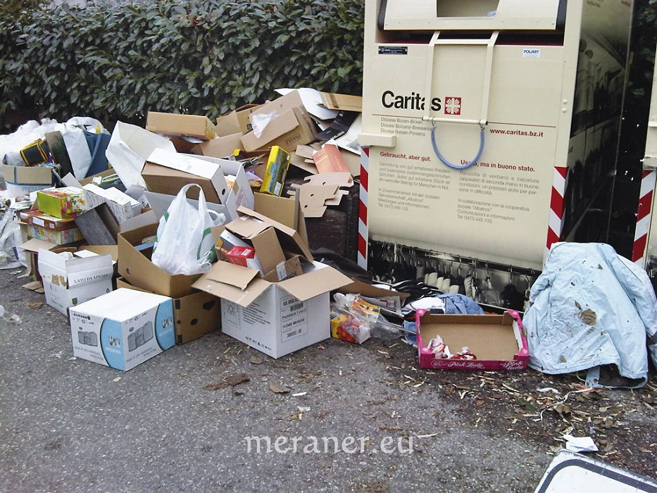 Die Bezirksgemeinschaft Burggrafenamt ist für das Müllkonzept in den 26 Gemeinden außerhalb Merans verantwortlich. Hier hatte es andere Probleme gegeben. Wertstoffe wurden nicht sauber getrennt oder mit anderem Material verschmutzt und damit also wertlos. „Wir haben in fast allen Gemeinden die Wertstoffglocken abgeschafft. Jetzt muss alles in überwachten Recyclinghöfen entsorgt werden, und das hat die Situation erheblich verbessert!“, erklärt Konrad Pfitscher, Umweltreferent der Bezirksgemeinschaft Burggrafenamt. Seine Vermutung ist, dass es nach wie vor etliche Menschen gibt, die glauben, Geld sparen zu können, indem sie ihren Müll anderweitig entsorgen. Bürger aus den benachbarten Ortschaften, die ihren Müll einfach in der Stadt deponieren? Das könne man nicht ausschließen, sagt Pfitscher. Meran biete da mit seinen unbewachten Wertstoffinseln natürlich eine gute Gelegenheit. Das schließt auch Stadtwerkedirektor Vitalini nicht ganz aus. Der Mensch hat sich an prompte Bedienung gewöhnt. Keiner ist es mehr gewohnt zu warten. Die Recyclinghöfe der kleinen Gemeinden aber sind nicht jeden Tag geöffnet. So steht vielleicht mancher mit einem vollen Kofferraum auch mal vor verschlossenen Toren. Könnte das einer der Gründe dafür sein, warum manche Bürger ihren Müll an peripheren Wertstoffglocken deponieren? In so einem Fall solle man doch einfach den Wertstoffhof in Meran nutzen, fordert Vitalini auf. Der sei sechs Tage die Woche geöffnet und gut zu erreichen.