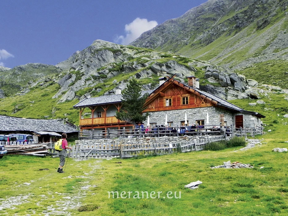 Die Penauder Alm ist auch von Latsch aus erreichbar. Man fährt mit der Seilbahn nach St. Martin im Kofel und wandert entweder über die Vermoispitze (2.929 m) oder über das Niederjöchl (2.662m). Von der Alm aus kann man zum Wetterkreuz aufsteigen und weiter über die „Augengläser Seen“ zum Zerminiger mit seinen 3.109 m Höhe.