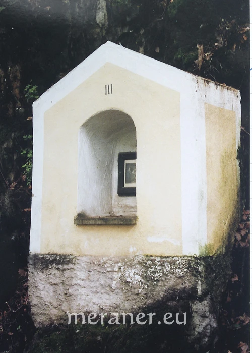 Errichtet wurde dieser Kreuzweg im 19. Jahrhundert und als Hauptstifter ist wohl Graf Anton von Brandis (1832-1907) zu nennen. Dieser, aus dem bedeutenden Lananer Grafengeschlecht stammend, war k. und k. Kämmerer, ab 1865 Abgeordneter zum Tiroler Landtag und von 1889 bis 1904 Landeshauptmann von Tirol und Vorarlberg. Zuvor wurde Graf Anton von Brandis 1887 in den Gemeindeausschuss von Lana gewählt.