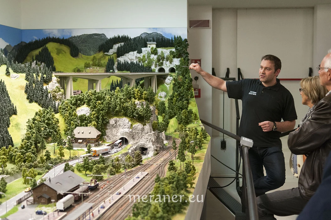 Vor kurzem besuchte das Redaktionsteam des Meraner Stadtanzeigers die Eisenbahnwelt in Rabland. Christian Schöpf gewährte uns einen umfassenden Einblick in das sehr offen und übersichtlich gebaute Museum und hatte für jede Lokomotive eine Geschichte parat. Mit viel Witz und Details führte er uns durch drei Stockwerke voll maßstabgetreuer Nachbildungen der Südtiroler Landschaft und auch einiger Persönlichkeiten. Während der Führung änderte sich des Öfteren die Tageszeit der Miniaturwelt, sodass wir auch in den Genuss des Nachtlebens der Eisenbahnwelt kamen.