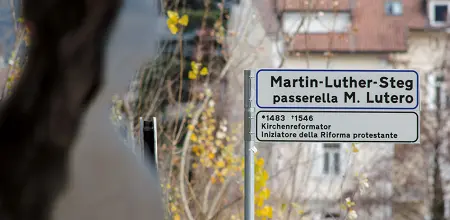 Seit dem Anbringen des zweisprachigen Schriftzugs „Martin-Luther-Steg“ / „Passerella M. Lutero“ am bis dato namenlosen Steg, haben viele Deutschsprachige ihr Befremden gegenüber der italienisierten Form „Lutero“ ausgedrückt und ihrem Ärger in Leserbriefen und Online-Kommentaren Luft gemacht. Zu lebhaft ist die Zwangsitalienisierung der deutschen Vor- und Familiennamen unter dem Faschismus noch in Erinnerung. Ist der Unmut also nachvollziehbar? Geht die Italienisierung deutscher Namen nun wieder von vorne los?...
