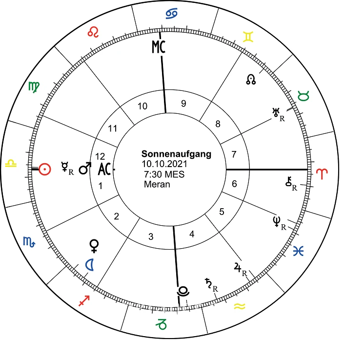 Am 10. Oktober geht die Sonne in Meran (auf den astronomischen, nicht landschaftlichen Horizont bezogen) im luftigen Sternzeichen Waage auf, passend zur breitgefächerten Auswahl an Listenzeichen und Kandidaten. Das Unwägbare, wie die Stadt Meran denn am besten zu regieren sei, liegt gleichsam in der Luft.