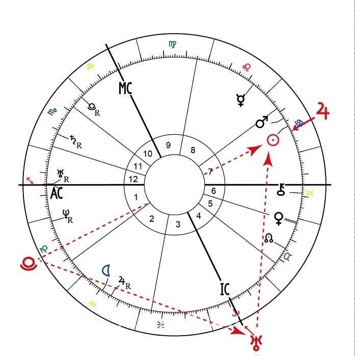 Die auf eine Kurzformel gebrachte primäre Geburtskonstellation, Mond-Jupiter-Uranus, hat als kosmische Energie viel mit dem Bedürfnis nach Freiheit und Erneuerung zu tun, und v.a. mit guten Gelegenheiten, im Handumdrehen aufs hohe Ross zu kommen, und bei Maßlosigkeit leicht vom Ross zu fallen. [Der Gang der Planeten zeigt das Auf und Ab der Gelegenheiten an, nicht unbedingt ihre Realisierung, d.h.: ein Ereignis ist nicht von vornherein zwingend und deshalb auch astrologisch nicht 100%ig prognostizierbar – höchstens ‚spekulierbar‘! Um eine entsprechende Glanzrolle zu spielen oder im Lotto zu gewinnen, bedarf es eines besonders günstigen Zeitpunkts, in der sich eine dominante Geburtskonstellation auslöst und dabei gleichsam neu aufgeladen wird.]