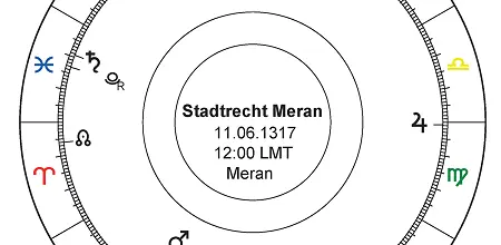 Die Stadt ordnet sich und feiert. Die Verleihung des Stadtrechtes durch König Heinrich von Kärnten, anno domini 1317, war ein Meilenstein auf ihrem Weg von der Marktsiedlung zur mondänen Kurstadt. Die Originalurkunde im Palais Mamming weist den 11. Juni als den denkwürdigen Tag aus. Ein Neuanfang im Sternzeichen Zwillinge . „Jedem Anfang wohnt ein Zauber inne ...“ Hinterm Blau des Mittaghimmels, vielleicht auch in Wolken gehüllt, blinzelten wie eh und je die Sterne und webten in ihren Mustern die „wahre...