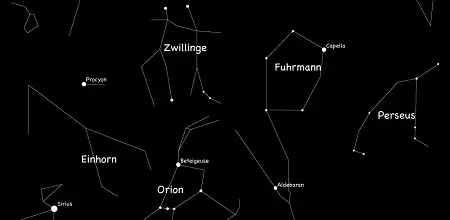 Neues Jahr – ewig alter Sternenhimmel zur selben Jahreszeit. Die Fixsterne scheinen sich kaum zu bewegen, deshalb heißen sie so. Im Unterschied zu den Planeten, den Wandelsternen eben, von denen vorerst nur Jupiter abends so richtig glänzt. Venus , im Advent noch strahlender Abendstern, ist inzwischen auf die Morgenseite gewechselt. Die hellen Sterne des Winters sind gar nicht so weit von uns entfernt. Aldebaran im Stier ist 65 Lichtjahre entfernt, der Sternhaufen der Plejaden oder des mythischen Siebengestirns immerhin 410...