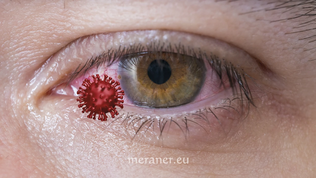 Neben den oberen Atmungsorganen ist das Auge eine der möglichen Eintrittspforten für das Virus. Das Virus konnte schon des öfteren in der Tränenflüssigkeit nachgewiesen werden und diese gilt auch entsprechend als hochinfektiös. Besondere Hygienemaßnahmen sind erforderlich. Es empfiehlt sich eine gründliche Händedesinfektion; Augenreiben und Manipulationen am Auge sollten vermieden werden.
