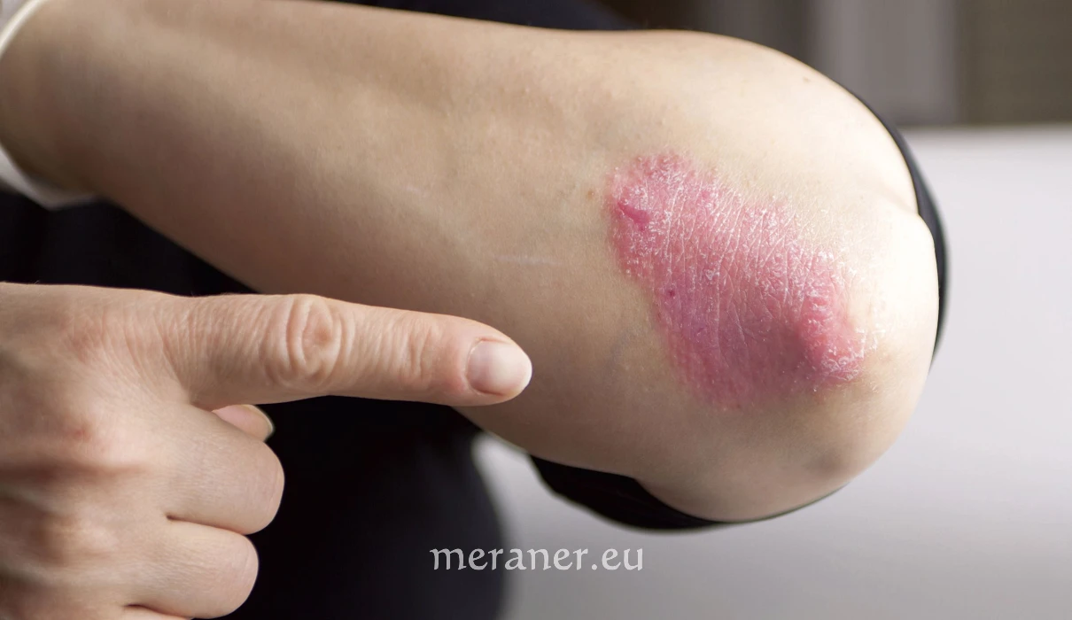 Psoriasis ist eine genetische Hauterkrankung, deren charakteristische Hauterscheinungen in Form von kleinen oder größeren, scharf abgegrenzten roten Flecken auftreten, welche mit silbrigweißen Schuppen bedeckt sind. Am häufigsten befallen sind Knie, Ellbogen und das Kreuzbein, aber auch der behaarte Kopf. Ganz selten ist das Gesicht betroffen. In schweren Fällen kann aber der gesamte Körper davon betroffen sein und es kann zu schmerzhaften Gelenkbeteiligungen kommen.