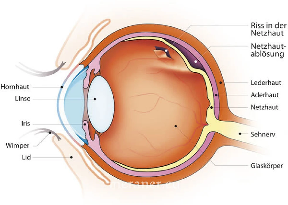 Das blitzende Auge ist ein typisches Symptom der sogenannten „akuten Glaskörperabhebung“. Der Glaskörper – eine gallertartige Flüssigkeit – füllt das Auge innen beinahe komplett aus. Er ist transparent und wird vom Körper immer wieder neu gebildet. Im Laufe des Lebens, meist im höheren Alter oder bei hoher Kurzsichtigkeit kommt es jedoch zu einer Verflüssigung des Glaskörpers. War er bisher direkt an der Netzhaut anhaftend, so bewegt er sich nun frei im Auge und kann optische Täuschungen wie „fliegende Mücken“ verursachen. Klebt der Glaskörper aber noch teilweise an der Netzhaut, dann kommt es durch Zug an der Netzhaut zu den typischen Blitzen. Durch das Ziehen wird die hochsensible Netzhaut gereizt. Die Neuronen können diese Reize nicht richtig interpretieren und schicken Signale an das Gehirn weiter; der Patient sieht Blitze.