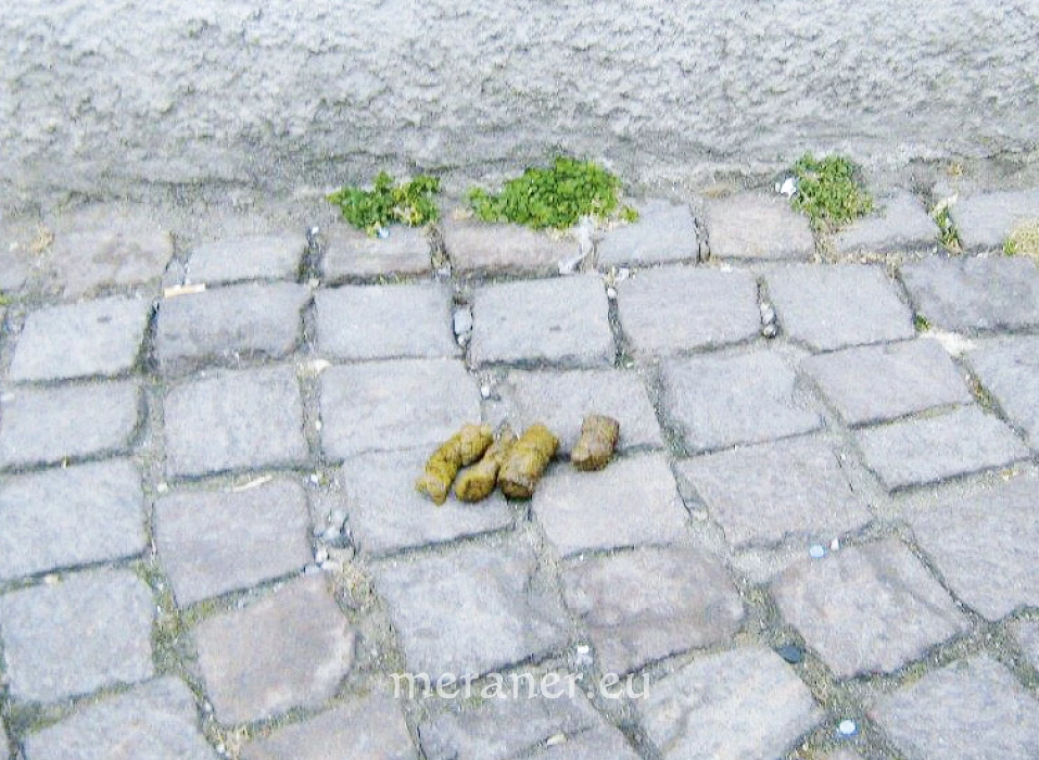 Franco*: Ich habe beobachtet, dass in der Vinschgauer Straße oft mehrere Häufchen Hundekot auf dem Gehsteig liegen, als wäre diese Strecke das Hundeklo Merans. Ich bin gerade die Vinschgauer und St.-Leonhard-Straße heraufgekommen und dabei beinahe in ein Häufchen getreten.
