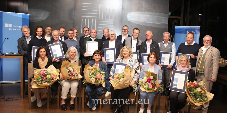 Abgeschlossen wurde die diesjährige Bezirksversammlung mit der Ehrung langjähriger hds-Mitglieder im Bezirk. Prämiert wurden folgende Betriebe bzw. Mitglieder für 30 Jahre Mitgliedschaft: Rauch G&H GmbH, Stiftung ERF Medien, Sportclub Meran Amateursportverein, Kompatscher R&A Ohg und Gestioni Langobardi Kg aus Meran, Fuchsberger Magnus & Co. Kg aus Lana sowie Bäckerei Zöggeler aus Tisens, für 40 Jahre Mitgliedschaft Pföstl Marlene & Co Kg aus Schenna, für 50 Jahre Mitgliedschaft Marsoner Norbert aus Ulten und Seppi Albert aus Dorf Tirol, für 60 Jahre Mitgliedschaft Agostini M. & Co. GmbH aus Meran sowie für 70 Jahre Mitgliedschaft Bertoldi Kg aus Lana.