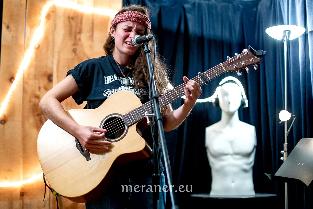Passend zu diesen Gefühlswelten, in denen auf ein Hoch auch immer ein Tief folgt, vermischt sie gerne verschiedene Genres. „Ich bin in einer sehr musikalischen Familie aufgewachsen, die mich sehr unterstützt und mir gefallen viele Stile. Dementsprechend spiele ich sowohl Blues als auch Jazz und Funk, um nur einige Stilrichtungen zu nennen“, so Nina. Musikalisches Vorbild ist für sie Lady Gaga. An dieser, unterstreicht sie, gefalle ihr die Energie und Authentizität, die Art, wie die Musikerin ihre Gefühle ausdrücken kann – und das auch durch poetische Texte. Eine politische Agenda verfolgt Nina mit ihrer Musik nicht. „Schließlich ist jeder Mensch durch sein Sein bereits ein politisches Statement“, erklärt sie. Aktiv eingesetzt hat sich die junge Musikerin in den letzten Jahren für die Straßenmusik in Meran. Heute geht es ihr besonders darum, dass diese ihre „Besonderheit“ bewahrt – deswegen, so plädiert sie, müsste sie besser geregelt sein. „Ein Zuviel an ungeregelter Straßenmusik kann auch zur Belästigung werden – und das sollte nicht sein“, unterstreicht sie.