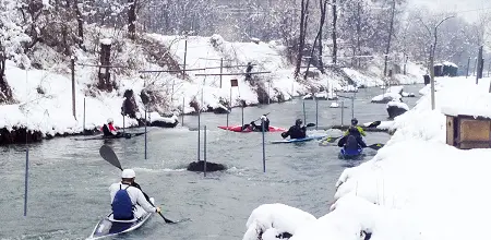 Die hellen Bretter aus nordischer Fichte sind ziemlich dünn, durch eine Ritze unter dem Dach kann man in den grauen Winterhimmel blicken: Mit etwa zwei mal zwei Metern ist die neue Umkleidekabine der Meraner Kanuten nicht gerade groß. Wird die Eingangstüre mit Plexiglasscheibe zugeschlagen, wackelt das ganze Häuschen. Aber es erfüllt seinen Zweck, bei Temperaturen nahe am Gefrierpunkt schützt es vor Wind und Wetter. Daher heißt es jetzt „Türe zu“!, wenn sich die Nachwuchsathleten zum Training am...
