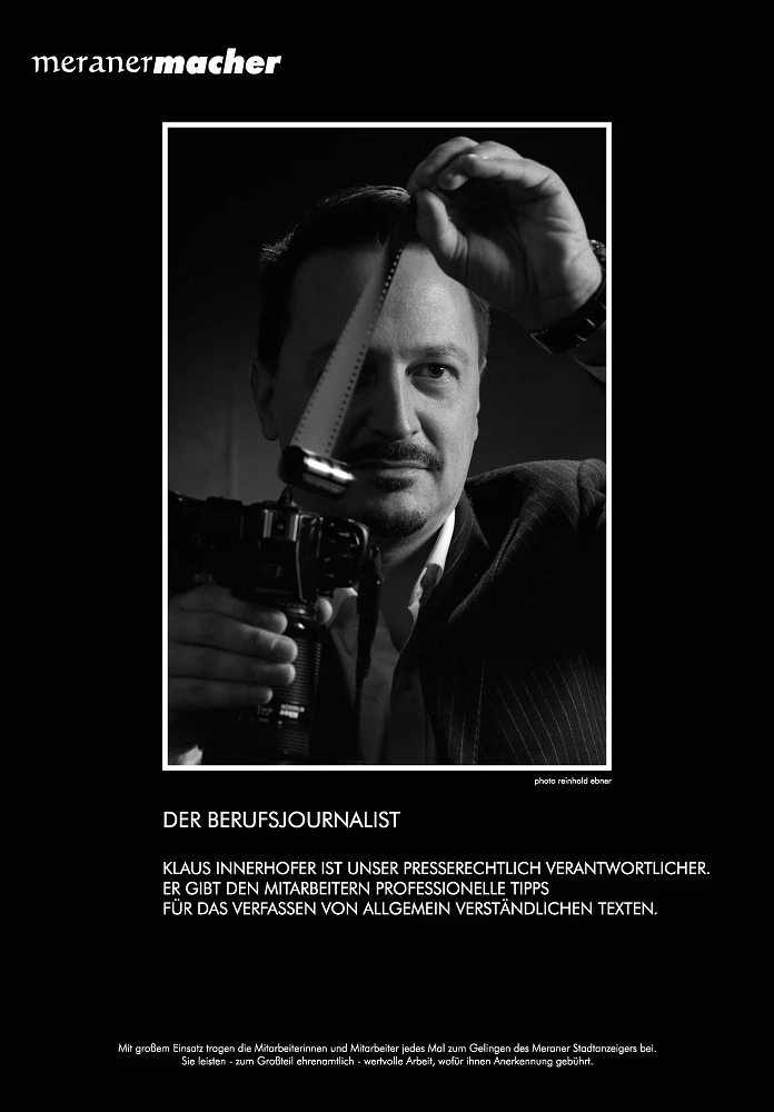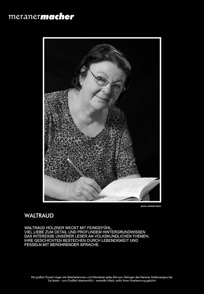 2013 hat der Meraner Stadtanzeiger ein Buch mit Fotografien von Reinhold Ebner herausgegeben. Sie können es hier durchblättern
