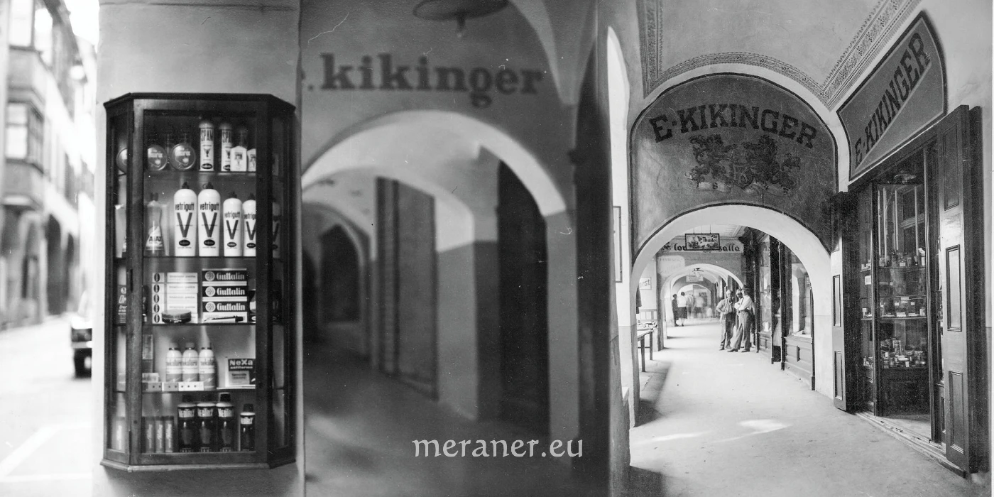 Eduard Kikinger kam im fernen Jahre 1845 aus dem bayerischen Passau nach Meran, wo er um die Konzession zum Seifensieden sowie um das Bürgerrecht beim Magistrat ansuchte und beides erhielt. Eduard Kikinger ehelichte 1868 Maria Egger aus Dorf Tirol, ihnen wurden die beiden Töchter Maria und Theres geboren. 1878 gab Kikingers zweite Frau, Elisabet Wwe. Kikinger, den Tod Eduards bekannt und trat die Nachfolge des Geschäfts an.