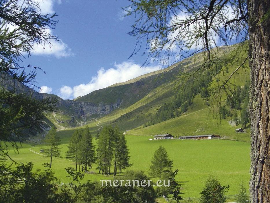 Gesicherte Funde belegen eine almwirtschaftliche Nutzung der Hochgebirge bereits in der Jungsteinzeit und dann verstärkt in der Bronzezeit (2200 – 800 v. Chr.). Aufgrund der geringen Bevölkerungszahl wird sich die frühgeschichtliche Weidenutzung in Grenzen gehalten haben. Ab dem Mittelalter (wärmeres Klima, Bevölkerungswachstum) wurden die heute bekannten großen Almflächen durch Rodungen immer tiefer in den Wald geschlagen. Dies ermöglichte früheres Auftreiben und führte zu einer Intensivierung der Waldweide. Ab dem 16. Jahrhundert („Kleine Eiszeit“) wurden die ehemaligen Höfe über der 2000-Meter-Marke (z. B. Moaralm und Gampl am Fuchsberg zwischen Naturns und Katharinaberg) wieder zu Almen umgewandelt.